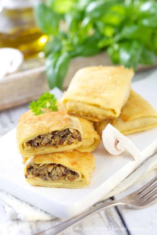Składniki: naleśnik 5dkg/szt, nadzienie pieczarkowe 3,5dkg/szt, panierka (jaja, bułka